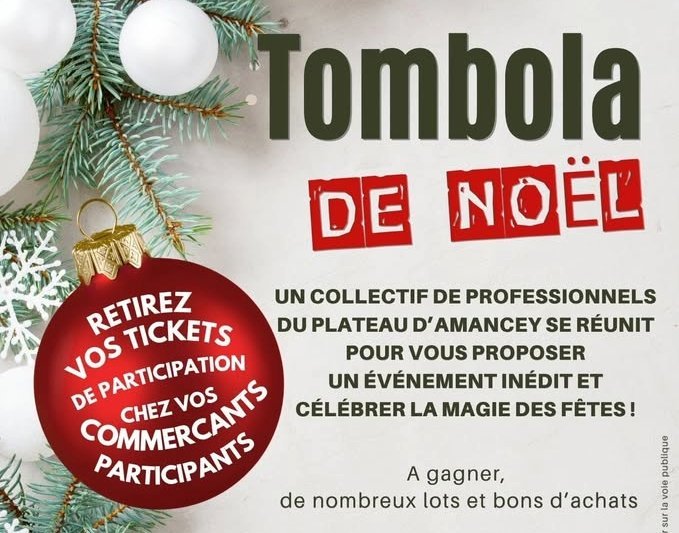 Jusqu'au 12 décembre faites vos achats chez les commerçants membre du collectif du plateau d'Amancey et recevez votre billet de tombola De nombreux lots et bons d'achats à gagner !